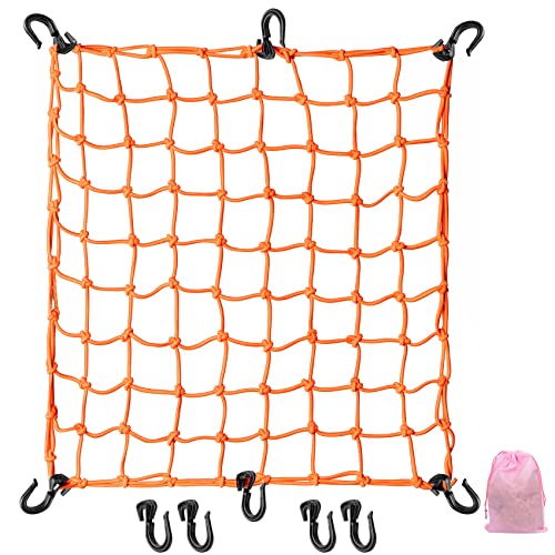 ツーリングネット バイクネット 50cm×50cmバイク用品 荷物 カーゴネット 伸縮性 荷物固定 荷崩れ防止 フック付き 収納袋付き ブラックの製品情報