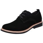 SOARHOPEの本革スエードカジュアルシューズ。レースアップデザインで、ビジネスやオフィスにも最適。シンプルでおしゃれなオールブラックカラー。通勤にも便利なデッキシューズスタイル。