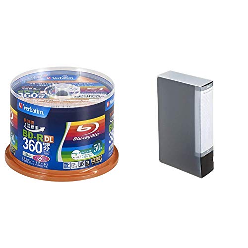 三菱ケミカルメディア Verbatim BD-R DLは1回録画用、50枚入り、片面2層、1-6倍速です。サンワサプライのブルーレイディスクケースは64枚収納可能で、便利な収納を提供します。
