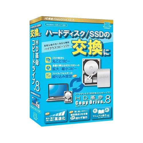 アーク情報システムのHD革命/CopyDrive_Ver.8は、ハードディスクやSSDの交換を簡単に行えるコピーソフトです。データをまるごとコピーし、環境設定も引き継げる便利なツールです。