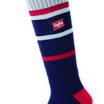 Rawlings(ローリングス)の野球・ソフトボール用ロングソックス。折り返しライン付きで、ネイビーとレッドの配色。サイズは25-28cm。快適な履き心地とスタイルを提供。
