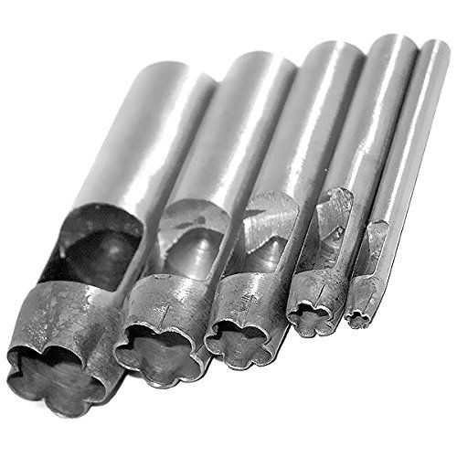 life_martのレザークラフトシェイプパンチセットは、花型の穴あけポンチが5本揃った工具です。刻印や型抜きに最適で、ハンドメイド革細工に役立ちます。