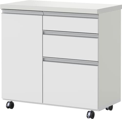 パモウナの食器棚(AW-90W)は、幅90cm、奥行47.2cm、高さ88.1cmのロータイプキッチンカウンターです。引き出し収納やキャスター付きで便利。カラーはプレーンポワイトです。