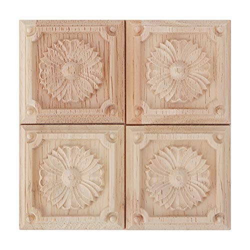 Atyhaoの木彫りデカールは、天然木製の4ピースセットで、装飾用モールディングやDIYに最適です。クラフトアートにぴったりなスクエアフラワー彫刻が施されています。