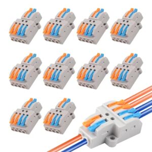 LIKENNY コンパクトワイヤコネクタ 10個 2 in4 out レバー付き接続端子セット ワンタッチコネクター 電線 配線 接続 電気コネクタブロック