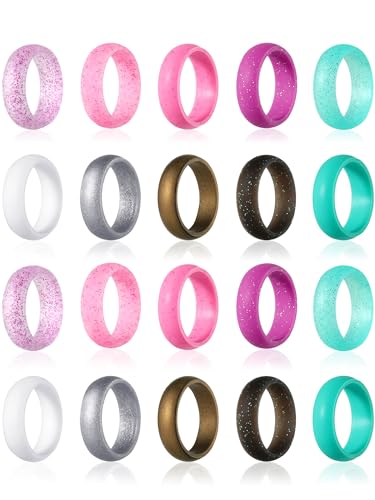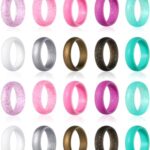 Hicarerの20ピースシリコンウェディングリングは、女性用の薄型で重ね付け可能なグリッターラバー製です。サイズは8 (18.1mm)で、ウェディングやスポーツに最適。