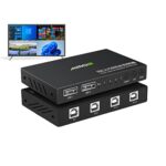 USB切替器は、最大12Mbpsの速度で4ポートをサポート。Windows、Linux、Android、MAC等で動作し、キーボードとマウスの同期コントロールを可能にします。
