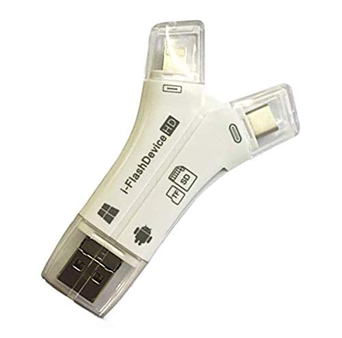 STAR FOCUS(スターフォーカス)の4in1マルチカードリーダーは、SDカード、Lightning、USB2.0、Micro USB、Type-Cに対応。ホワイトカラーで、取扱説明書と製品保証書付き。