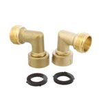 Dumbleの90度ガーデンホースエルボフィッティング2パックです。4つのワッシャー付きで、アウトドア蛇口の延長やホースコネクターに最適。耐久性があり、使いやすい設計です。