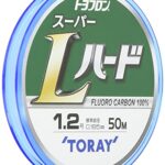 東レのトヨフロン スーパーLハードは、1.7号の強度を持つ透明なラインで、50mの長さがあります。高い耐摩耗性と結節強度を誇り、様々な釣りシーンに最適です。