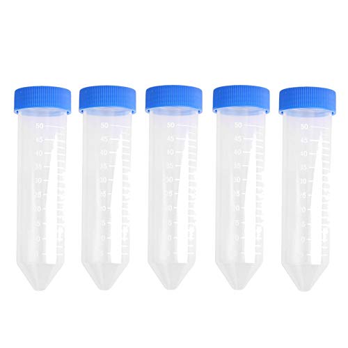 Radiya研究室の50mlプラスチック製目盛付シリンダーは、キャップ付きで、遠心分離管として使用可能。5個セットで、実験や測定に便利です。耐薬品性に優れた設計。