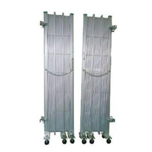 三協アルミのクロスゲートTは、片開き親子タイプの伸縮門扉です。サイズ69DO(13S+56T)H12(1210mm)、ガイドレールタイプ(後付け)、カラーはホワイトです。受注生産品です。