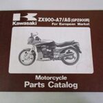 中古のカワサキGPZ900R用正規バイク整備書とパーツリストの英語版です。正確な整備情報と各種パーツの詳細が含まれています。バイクのメンテナンスに最適な資料です。