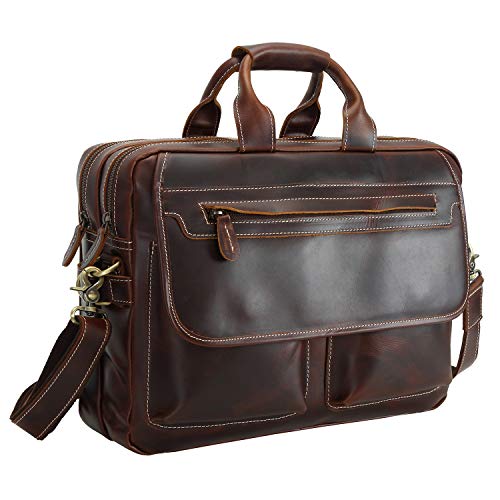 Polareのフルグレインレザー製15.7インチメッセンジャーバッグは、14インチノートパソコンにフィットし、ビジネスシーンに最適です。耐久性があり、高級感のあるデザインが特徴です。