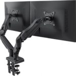 HUANUO PCモニターアームは、デュアルで13~32インチの液晶ディスプレイに対応し、耐荷重は2~9kg。ガススプリング式で、多角度調節可能。VESA100*100対応、グロメット式&クランプ式でケーブル収納も可能です。