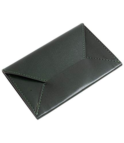 Dom Tepornaの名刺入れは、薄型の封筒型で、すべて本革製です。イタリアンレザーの牛革を使用しており、就職祝い、入学祝いにも最適。メンズ・レディース両方に対応するグリーンのカードケースです。