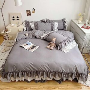 【暖かさ+3℃】Vallein 布団カバー シングル 3点セット 冬用 フランネル マイクロファイバー ベッドカバー セミダブル ダブル 布団カバーセット ボックスシーツ 掛け布団カバー 寝具カバーセット(ダークグレー·セミダブル)