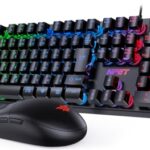 NPETのゲーミングキーボード&マウスセット。LEDバックライト7色、26キー防衝突。角度調節可能な日本語配列キーボード、4段階DPI設定可能(1000/1600/3200/6400)。日本語説明書、キーキャッププーラー付き。