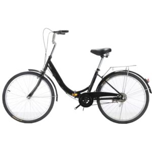 ママチャリ 折りたたみ自転車 26インチ7段変速ミニベロ カゴ付 折り畳み 自転車 シティサイクル 街乗り 通勤 通学 プレゼント ランキング 26インチ (ブラック) [並行輸入品]