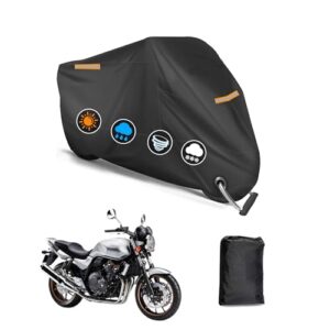 バイクカバー ホンダ CB400スーパーフォア(CB400SF) 専用 バイクカバー バイクボディーカバー 3つの反射ストリップ 原付カバー UVカット 凍結防止カバー 車体カバー 盗難防止 ワンタッチバックル付き ロック穴付き オールシーズン対応 【収納バッグ付き】