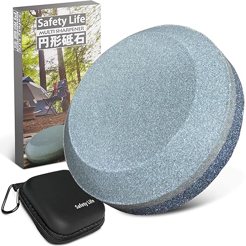 Safety Lifeの砥石ディスクストーンFT-0012は、手斧や刃物の研ぎに最適なマルチシャープナー。携帯ケース付きでアウトドアにも便利。粗さは#120と#280の2種類。