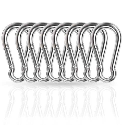 SUS304ステンレス鋼製の強力スプリングフック。多機能で、アウトドアや旅行に最適。釣りやトレッキングにも対応し、転倒防止に役立ちます。サイズ: m4 8。