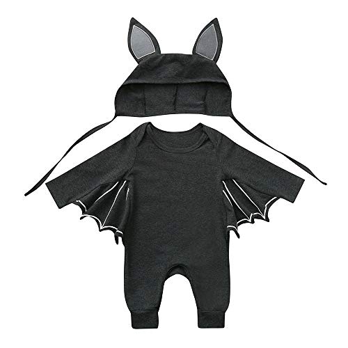 Bokeley-Baby洋服セット 幼児 赤ちゃん 男の子 女の子 ハロウィン コスプレ コスチューム バットボディスーツ 帽子セット (0-6ヶ月 ダークグレー)