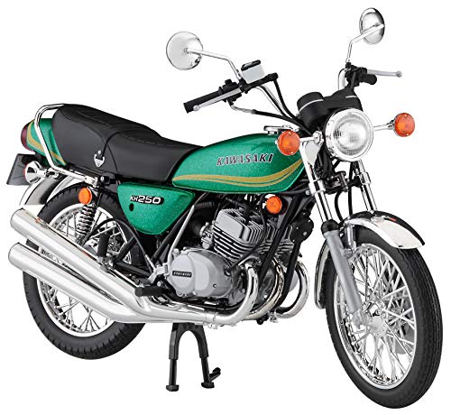 ハセガワの1/12スケールプラモデル、カワサキKH250-B3/B5は、詳細な再現と組み立てやすさが特徴。リアルなデカールや部品が付属しており、バイク愛好家に最適なモデルです。