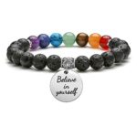 Jovivi 7チャクラ溶岩石 ヒーリングクリスタルビーズ 不安ブレスレット Believe in Yourself 刻印 インスピレーションを与えるモチベーションを高める引用ブレスレット レディース メンズ, 1 Count (Pack of 1), 石材