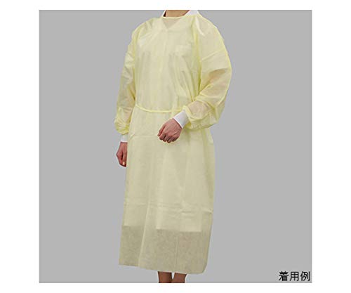 竹虎のアイソレーションガウン、フェルラックNo.60はフリーサイズで、イエローのデザインです。100枚入りで、医療現場や感染予防に適した高い防護性能を持っています。