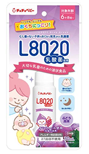 チュチュベビー L8020乳酸菌マウスドロップは、子供に優しいブドウ味の健康サポート食品です。1本30mlのドロップが5個セット。腸内環境を整え、免疫力を高めるL8020乳酸菌を配合。