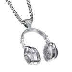 PAMTIER ステンレススチール製のDJヘッドセットデザインのイヤホン。音楽を愛する男性に最適なペンダントネックレス。3色展開、フリーチェーン仕様。