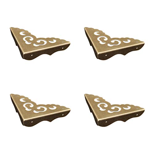 CUTOOPの真鍮製アンティークコーナープロテクター4個セット。レトロなデザインで、木製キャビネットや宝石箱の保護に最適。サイズは65mm。家具のデコレーションにもおすすめです。