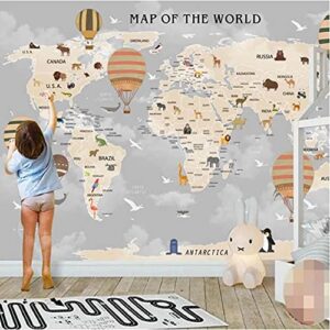 漫画の写真動物の風船の世界地図子供部屋の寝室のリビングルームの背景子供部屋の装飾のための壁の壁画の壁紙-450X300cm