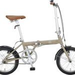 キャプテンスタッグのAL 16インチ折りたたみ自転車は、アルミフレームで約10.5kgの軽量設計。ハンドル高さ調整や前後V型ブレーキ、SHIMANOパワーモジュレーター、高ギア比、前後泥よけが標準装備。カラーはカーキです。