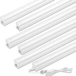 LED蛍光灯 40W形の器具一体型で、T5 LED直管18W、2700K-3000Kの電球色を提供。120cmサイズ、工事不要で軽量。連結コード付き、スイッチも装備。6本セット。