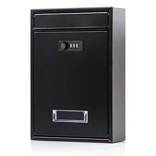 Jssmst メールボックス Mail-06は、ダイヤル式の暗証番号機能を搭載した壁掛け金属製ポストです。ブラックカラーでスタイリッシュなデザインが特徴です。