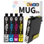 エプソン MUG互換インク4色セットは、鮮やかな印刷品質を実現。ブラック、シアン、マゼンタ、イエローの4色が含まれ、コストパフォーマンスに優れ、印刷時のトラブルが少ない設計で、幅広い対応機種に適合します。