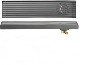 Ladfrol ロングストリップ排水床排水、全銅コア、ガングレー304ステンレス鋼浴室大排気量、防錆、防虫、防臭、高速排水、長方形の直線設計、竹の列カバー、マット仕上げ、家庭用および商業用 ガングレー (側列,8*120cm) [並行輸入品]