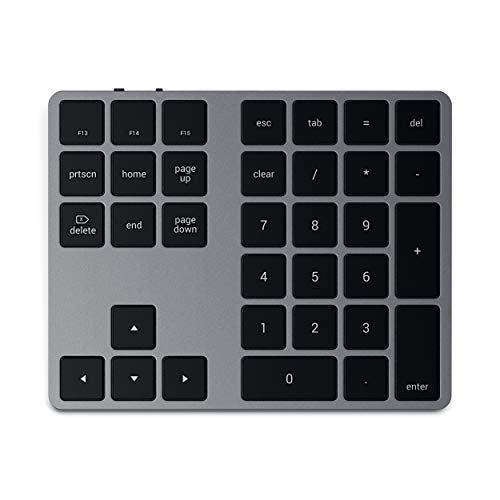 SATECHIの34キーBluetoothワイヤレステンキーパッドは、USB-C充電、アルミデザインでMacやiPadと互換性があります。スペースグレー仕様。