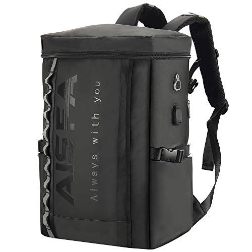 AISFAのリュックは、17インチPC対応の防水バックパックで、ビジネスやアウトドアに最適です。USB充電ポート付きで、30Lの容量があります。底部ポケットなしのデザインです。