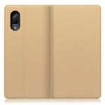 LOOF SKIN SLIM ケースは、AQUOS sense3 plus/sense3 plus サウンド専用の手帳型カバーです。カード収納可能でマグネット付き、ベルトなしデザイン。カラーはゴールド。