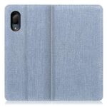LOOF Denim AQUOS sense3 plus用手帳型ケースは、デニム生地を使用した横入れタイプ。カード収納、スタンド機能付きで便利。おしゃれでシンプルなデザイン(ライトブルー)。