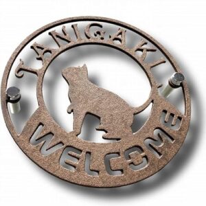 表札 アイアン プレート 丸くておしゃれでかわいい猫のデザイン 厚み3.2mmの極厚 プレート 玄関 門柱 扉 風水 ポスト カーポート 選べる書体! 選べるカラー! 戸建て 新築祝い 彫刻 屋外耐侯 おしゃれ 看板 モダン シンプル (01.(書体番号 MN-1), 03.錆色)