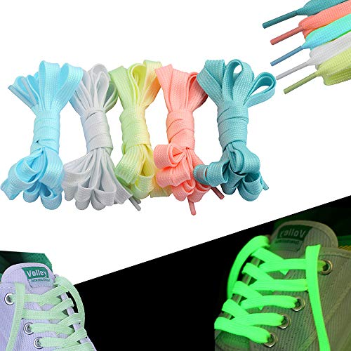 HizeJie 靴ひも 5組 発光 装飾 上部 暗闇で光る すべてのレジャースポーツシューズに適しています 厚手のフラットレース。, フラット, M 高価買取中