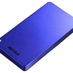 バッファローのポータブルSSD SSD-PGM480U3-Lは、USB3.2(Gen2)対応で480GBのストレージ容量を持ち、データ転送が高速です。コンパクトなブルーのデザインが魅力的で、持ち運びに便利です。