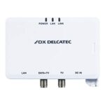 DXアンテナの《DXデルカテック》は、高速同軸線モデムで、子機の自動登録が可能。子機間通信は不可で、2K・4K・8K対応、最大通信速度は1GbpsのECG12T1です。