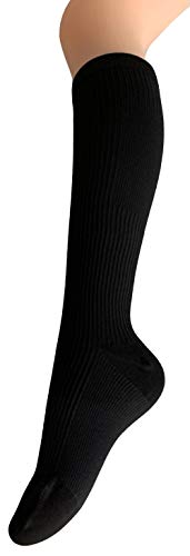 日本製の着圧ハイソックスは、適度な圧力で血行を促進し、むくみや疲れを軽減します。シンプルなブラックカラーで、カジュアルからビジネスシーンまで幅広く使えます。快適な着用感と高品質な素材が特徴です。