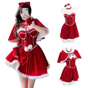 [アヘガオ] サンタ コスプレ クリスマス コスプレ衣装 ロリータ風 ワンピース 可愛い レディース バニーガール コスチューム セクシー 仮装 変装 ワンピース 長袖 ベルベット 帽子付き 赤 人気 (スタイル#4)