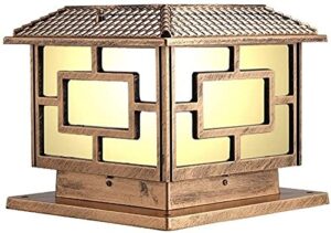 アイアンメタルIP42防水防雨パティオポストライトヴィンテージスクエアトラディショナルアウトドアピラーライトブロンズランドスケープコラムライトエクステリアスクエアE27ガラスランタンガーデンストリートローンランプの装飾